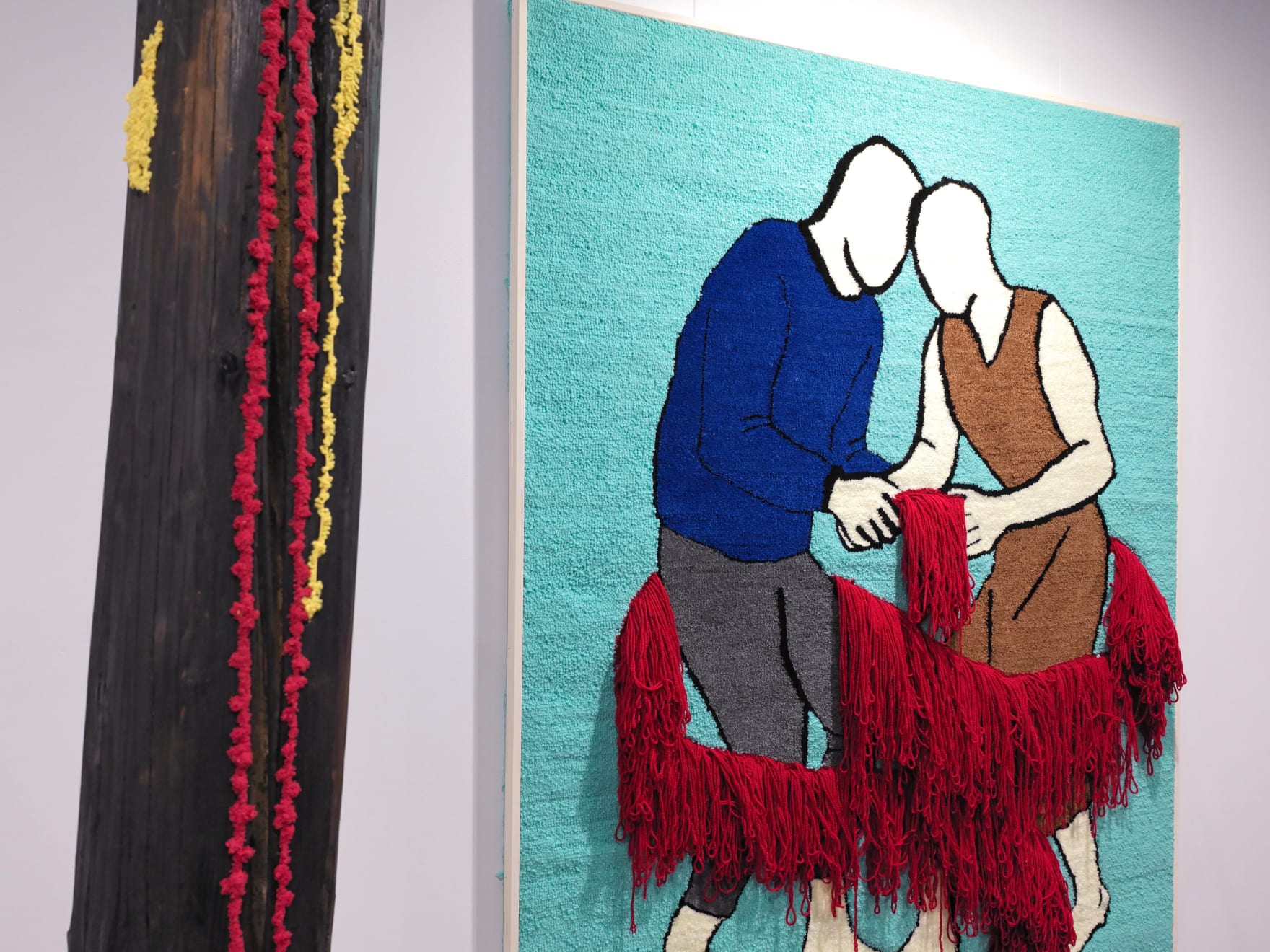 Karíma Al-Mukhtarová představuje objektovou tvorbu ze skla, dřeva a textilu, která se dotýká témat rituálu, proměny a tělesnosti. Její prošívané skleněné objekty, totemické dřevěné trámy a rozměrná tapisérie působí jako spirituální artefakty – silně hmatové, symbolické a zakořeněné v řemeslných tradicích.
